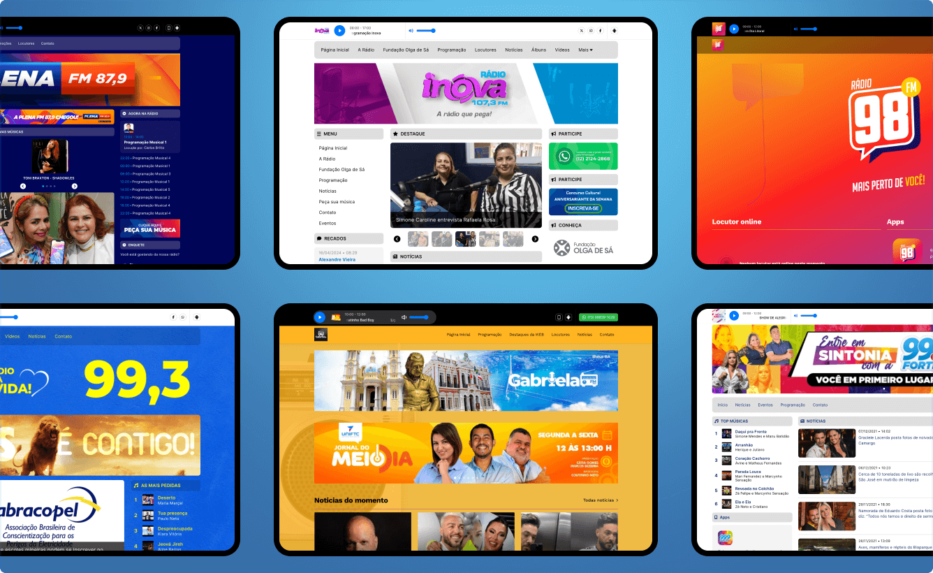 Emissoras tradicionais do dial que desejam levar sua programação para o digital, potencializando sua audiência através de site, apps e skill da alexa.